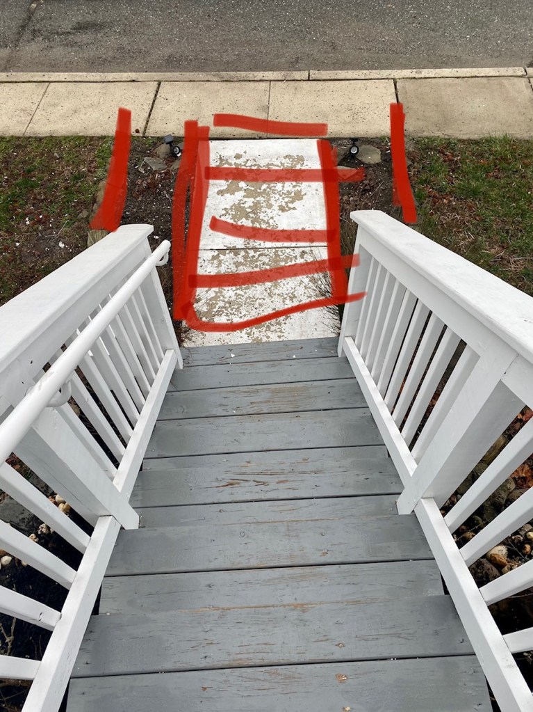 Keeping the walkway dimensions as close to the original and addressing the fact my house was built on a street that ended up on a slight angle I got to work. Yes, my house was here most likely before the sidewalks we’re out here repping 1918.