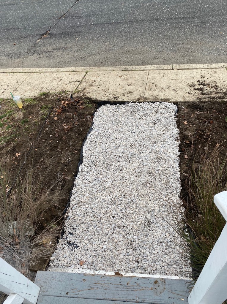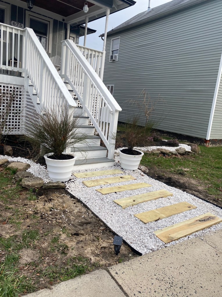 It wouldn’t be me if I didn’t casually rip out the front walkway while redoing the yard.. what’s a little extra demo between friends ?
